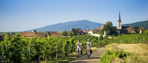 阿爾薩斯產區(qū)有一條100多公里的騎行線路,在這里騎行,最大的樂趣就是沿途參觀大大小小的酒莊、葡萄園。不過,由于一路上坡道與彎道較多,騎行還是有一定難度的。