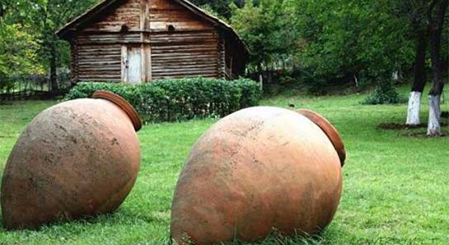 埋入地下酒窖的qvevri,即粘土燒制的陶罐,較大優(yōu)勢在于葡萄酒在寒暑交替中保持幾近恒定的溫度。Qvevri陶罐不僅在葡萄酒釀造過程中發(fā)揮著重要作用,也是非常好的儲酒容器。其雛形結(jié)構(gòu)保證了葡萄酒從葡萄籽、梗及葡萄渣汲取有益成分的同時,還避免了大面積接觸而產(chǎn)生的不利影響。釀造過程中,葡萄籽、梗和葡萄渣沉積于罐底,酒與沉淀物覆蓋其上長達數(shù)月。由此釀出的葡萄酒口感上佳,風(fēng)味醇厚,富含單寧,具有優(yōu)良的陳釀潛質(zhì),色澤絢麗并隱約傳遞出蘋果干和核桃香氣。