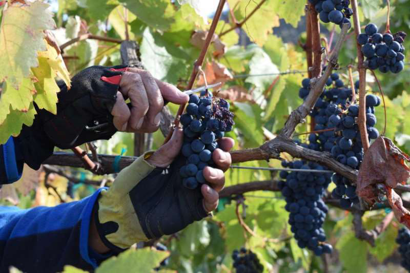 大部分酒莊會(huì)選擇先采摘白葡萄品種再采摘紅葡萄品種。為了把握好最佳的采收時(shí)機(jī),很多酒莊會(huì)在葡萄進(jìn)入轉(zhuǎn)色期后就對(duì)其成熟度進(jìn)行密切的監(jiān)測(cè)。采收的方式分為人工和機(jī)器采收2種。手工采收由葡萄農(nóng)用園藝剪刀將葡萄一串串地剪下來(lái),這種采收方式較為緩慢,而且所需的勞動(dòng)力較多,但可以對(duì)所采收的葡萄進(jìn)行挑選,對(duì)葡萄果實(shí)的損壞也較少。