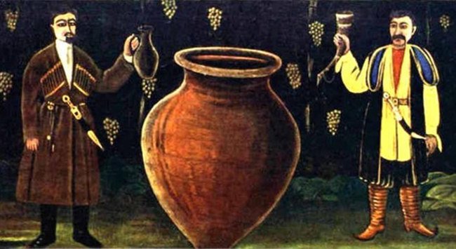 從公元前6世紀(jì)開始,格魯吉亞人就一直用一種叫做陶罐qvevri的容器來釀酒。這些巨大的粘土容器通常是用蜂蠟做襯里并埋在地下以保持溫度恒定。釀酒師在這些容器中發(fā)酵葡萄汁,同時(shí)讓葡萄皮與葡萄汁一起浸泡,這就把許多白葡萄酒變成了琥珀色,不論紅葡萄酒還是白葡萄酒都增加了單寧。