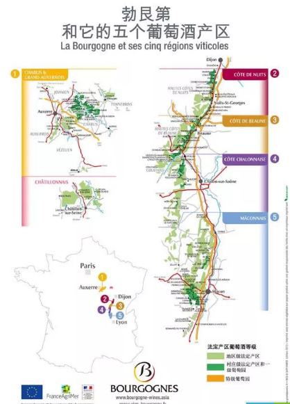 勃艮第的產區主要是以下五個