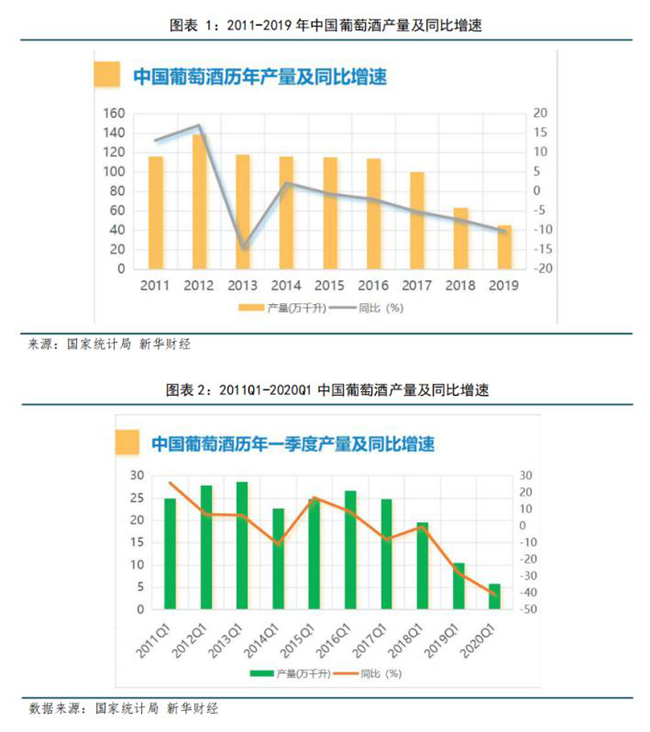 1、國產葡萄酒受疫情影響下滑加劇,2020Q2開啟弱復蘇