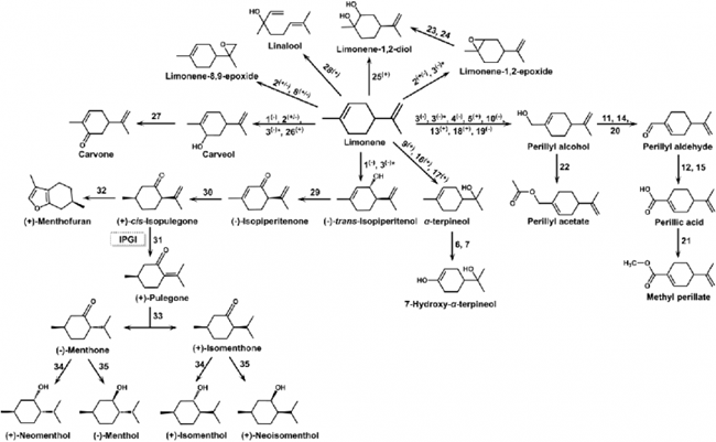 葡萄與葡萄酒中單萜類化合物能夠賦予葡萄與葡萄酒濃郁獨特的芳香,如玫瑰、桂花、鳳梨及蜂蜜等香味。檸檬烯是葡萄與葡萄酒中天然存在的具有代表性的單帖香氣物質(zhì)之一,在微生物作用下能夠衍生出數(shù)十種單萜類化合物。闡釋檸檬烯生物合成途徑及衍生化過程有助于理解葡萄與葡萄酒萜烯類香氣物質(zhì)的形成機(jī)制,為利用代謝工程進(jìn)行葡萄育種研究,以及采用工程菌調(diào)控葡萄酒品種香氣物質(zhì)組成開展前瞻性研究提供理論依據(jù)。此外,利用合成生物學(xué)和代謝工程策略構(gòu)建高效檸檬烯及其衍生物微生物細(xì)胞工廠能夠為葡萄園廢棄物高值化再利用,實現(xiàn)葡萄酒產(chǎn)業(yè)提質(zhì)增效提供新思路。