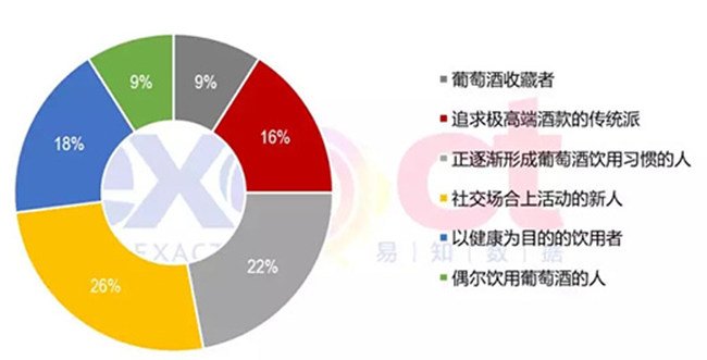 葡萄酒消費(fèi)者根據(jù)消費(fèi)偏好及飲用習(xí)慣可分為六類(lèi)人群,包括葡萄酒收藏者、追求極高端酒款的傳統(tǒng)派、正逐漸行程葡萄酒飲用習(xí)慣的人等。