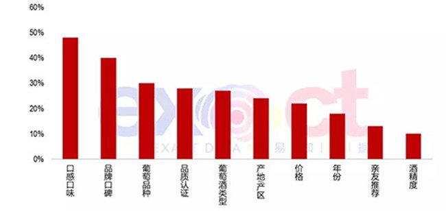 數(shù)據(jù)顯示,消費(fèi)更愿意跟隨內(nèi)心,為個(gè)人喜好買(mǎi)單,口感口味(48%)超過(guò)品牌口碑(40%)和價(jià)格(22%)成為排名第一的影響購(gòu)買(mǎi)因素,可見(jiàn)消費(fèi)者在選購(gòu)葡萄酒時(shí)趨于理性。