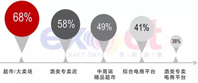 近年線(xiàn)上零售發(fā)展迅猛,雖然從數(shù)據(jù)來(lái)看,超市/大賣(mài)場(chǎng)、酒類(lèi)專(zhuān)賣(mài)店、精品超市三種傳統(tǒng)零售渠道仍占大比重,但仍然有41%和38%的消費(fèi)者選擇線(xiàn)上平臺(tái)。且隨著千禧一代年輕消費(fèi)者崛起,線(xiàn)上消費(fèi)的意愿會(huì)更強(qiáng)烈。