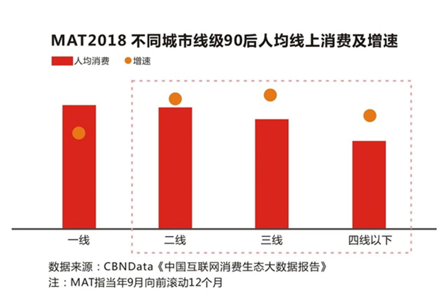二線及以下城市的“小鎮青年”群體消費增速快于一線城市,消費潛力巨大。