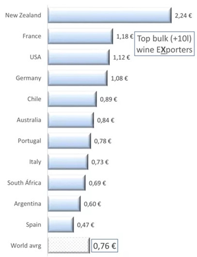 世界散裝葡萄酒的平均出口價格為每升0.76歐元。