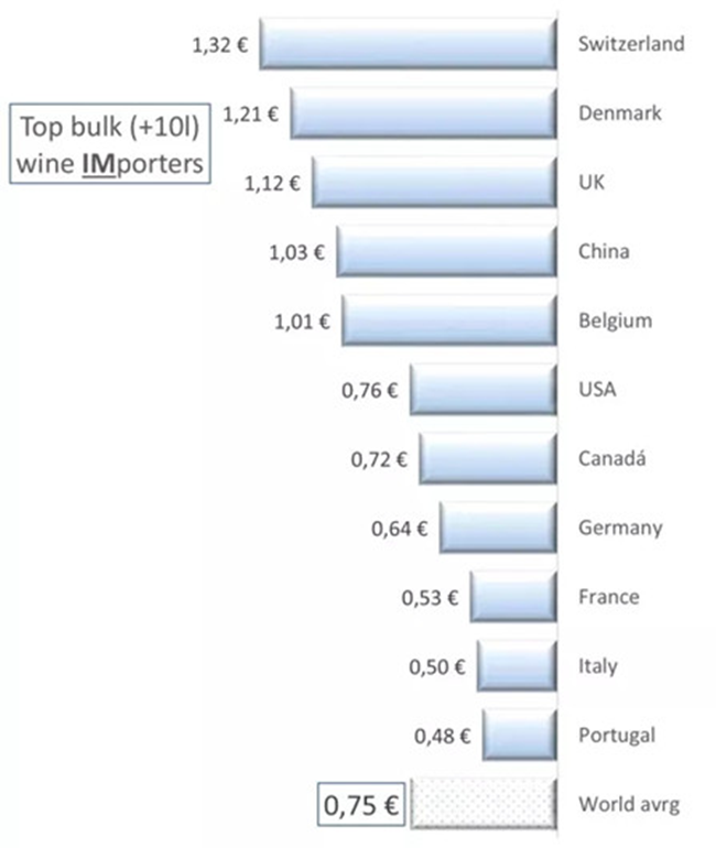 世界散裝葡萄酒的平均進口價格為每升0.75歐元。