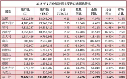 2018年1-2月進口酒數(shù)據(jù)出爐:葡萄酒消費升級趨勢明顯