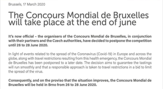2020年比利時布魯塞爾國際葡萄酒大獎賽延期至6月舉辦