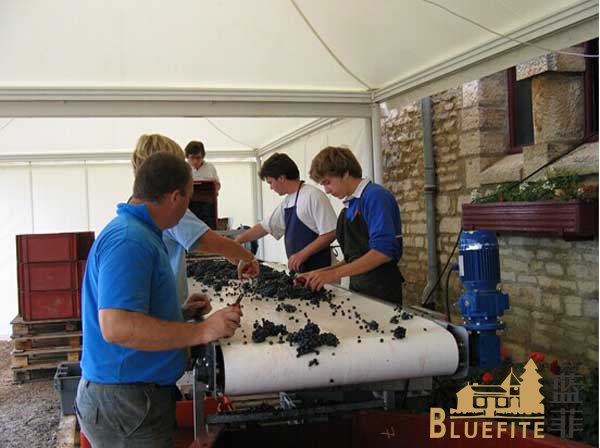 葡萄的采摘有兩種方式:人工采摘和機械采摘。藍菲葡萄園內將根據地形及種植的葡萄品種,選擇不同的采摘方式。