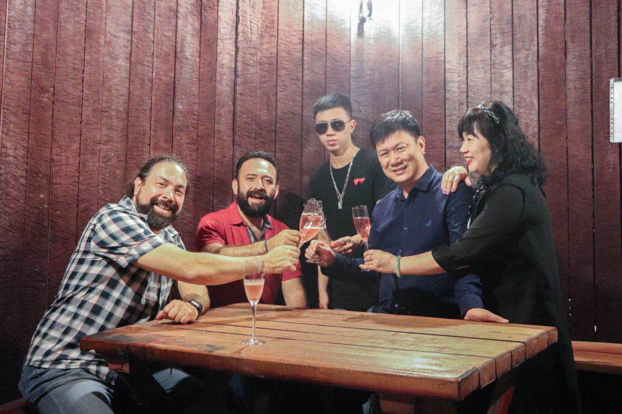 (酒莊莊主Robert先生、Francisco先生設(shè)宴接待藍(lán)菲酒業(yè)董事長(zhǎng)莊榮昌先生、執(zhí)行董事郭紹滿等人)